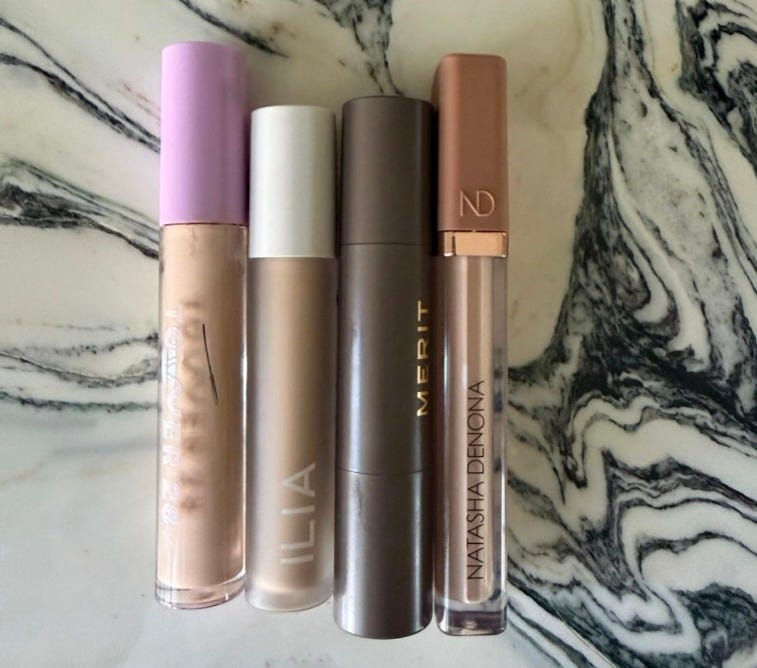 Tower 28, Ilia, and Natasha Denona all make more serum-like concealers. If you are prioritizing cleaner formulations, I would lean toward Ilia or Tower 28.
