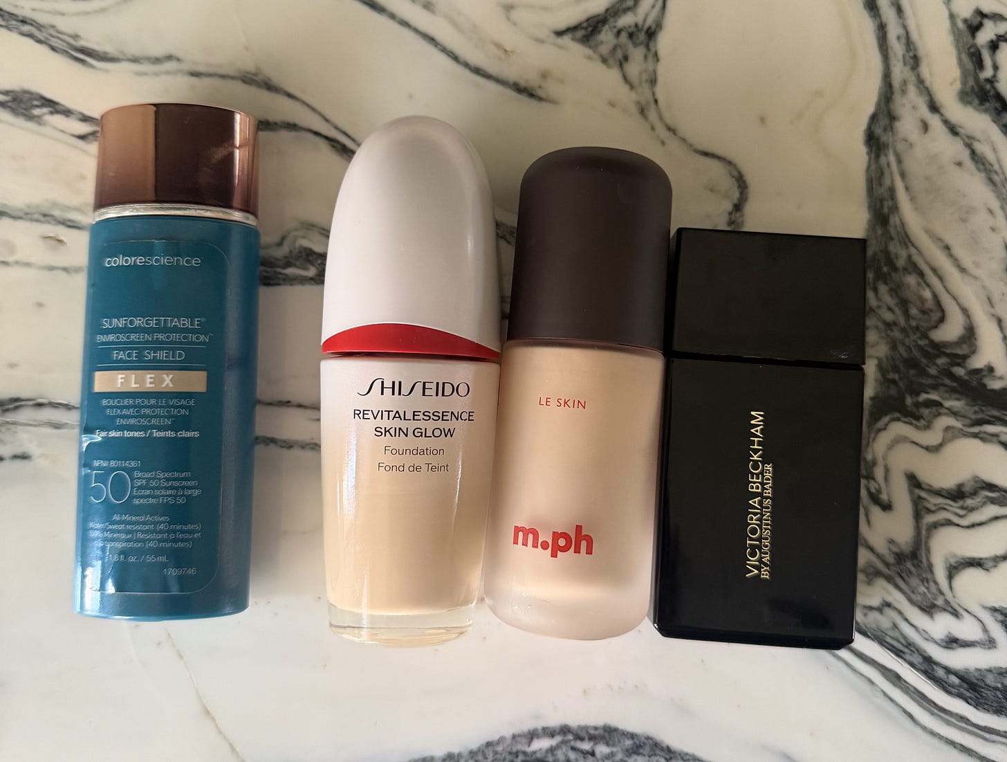 foundation/liquid sunscreen: I love this MPH one, if you want something denser this. Use this one for sunscreen.